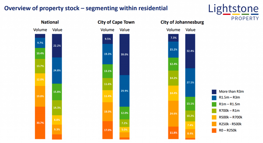 One of the most interesting findings, the group said, is how the value and volume of properties compares between Cape Town and Johannesburg.