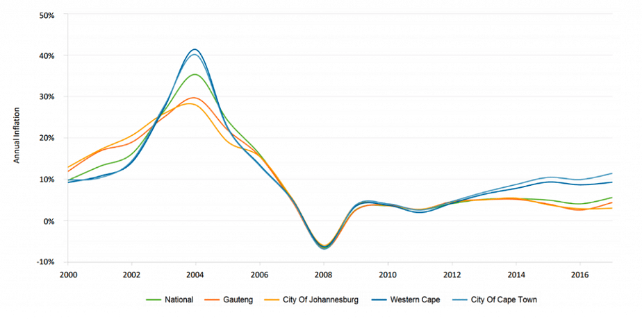 “Annual property inflation experienced similar growth nationally over the next four years. After 2012 however, the Western Cape and the City of Cape Town became increasingly more attractive to potential buyers,” Lightstone said.
